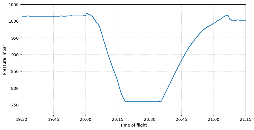 Pressure variation during the flight.