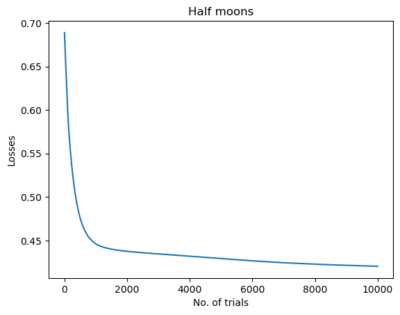 Final accuracy is 87.6 %. The model struggle a bit in the beginning according with losses plot.